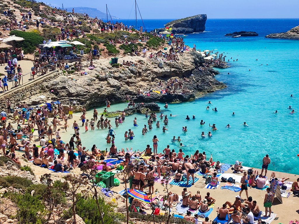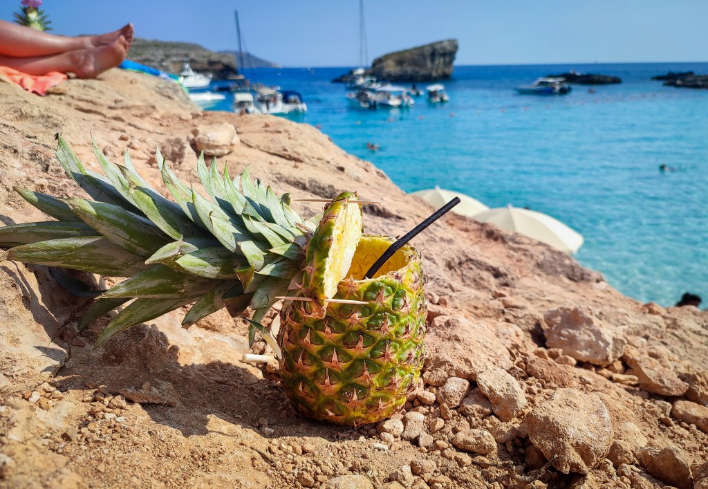 A hajó kikötött, a többszáz főre rúgó népes turistasereg egy emberként rohamozza meg a türkizkék vizéről híres Blue Lagoont, Málta egyik világhírű helyszínét. A kőlépcsőfokok feletti szűk ösvény zsúfolásig megtelt: a hőségben a legtöbben a kristálytiszta tengervíz felé igyekeznek, mások pedig a „kötelező” koktélokért állnak sorba a látszatra gyorsan összetákolt, zenétől dübörgő bódébárok előtt. A helyi fesztiválhangulat fontos része, hogy a hűsítő italokat pohár helyett egy esernyővel díszített, kibelezett ananászban adják ki, ami a tengerparti látképpel lefotózva azonnal megy is fel a közösségi médiába. De vajon mi a valóság a paradicsomi idill mögött?
